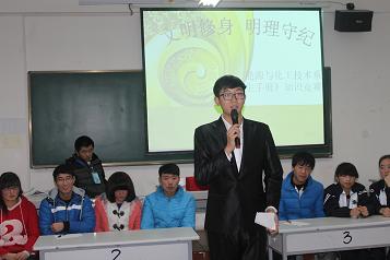 为提高我系员工的综合素质,培养员工严于律己的态度,进一步加强我系员工安全教育和管理工作,营造和谐礼让的校园环境,12月11日晚7点,我系团总支员工会在竞新楼228教室举行“文明修身,明理守纪”能源与化工技术系《员工手册》知识竞赛。系团总支书记纪杭辛老师和团总支员工会全体同学参加了本次活动。