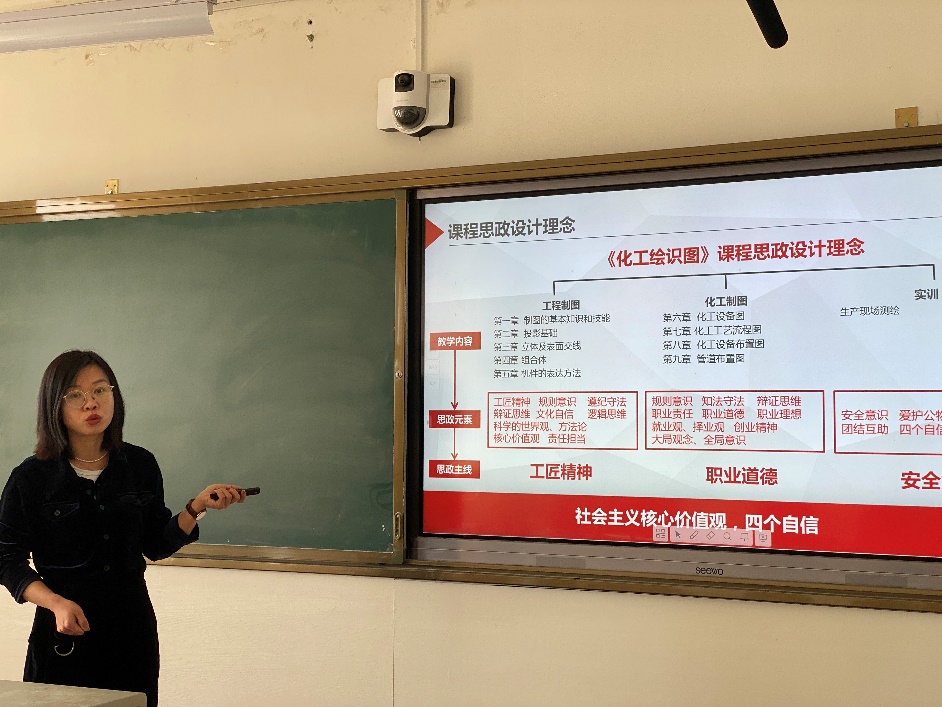 近两年通过公司组织的多次线上线下多种形式培训,教师在教学过程中将思政元素融入教学的意识不断加强,但结合的点还是不够多,思路不够开阔,同时内容讲解不够深入。考虑到以上情况,活动先请王蓓蓓老师就已结题并评定为优秀等级的课程思政项目为大家做分享。王蓓蓓老师介绍了《化工绘识图》课程内容结合的工匠精神、职业道德、安全意识三个方面的思政元素,并建议大家建立思政元素的案例库,在授课过程中进行有机结合使用,同时就如何培养员工的自信心,与实际工作结合方面介绍了自己的想法和做法。