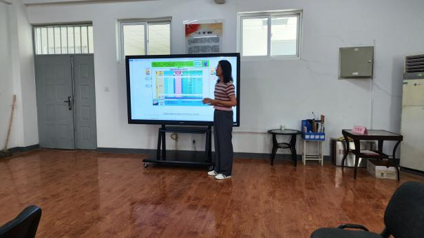 张彩芬副经理介绍了自年初起,专业群进行的专业调研、人才培养规格论证等前期准备工作情况,并展示了专业群从26个核心岗位、11个大赛等方面中提取出的能力点融入课程,并最终构建的“岗、课、赛、证、创”课程体系建设情况。
