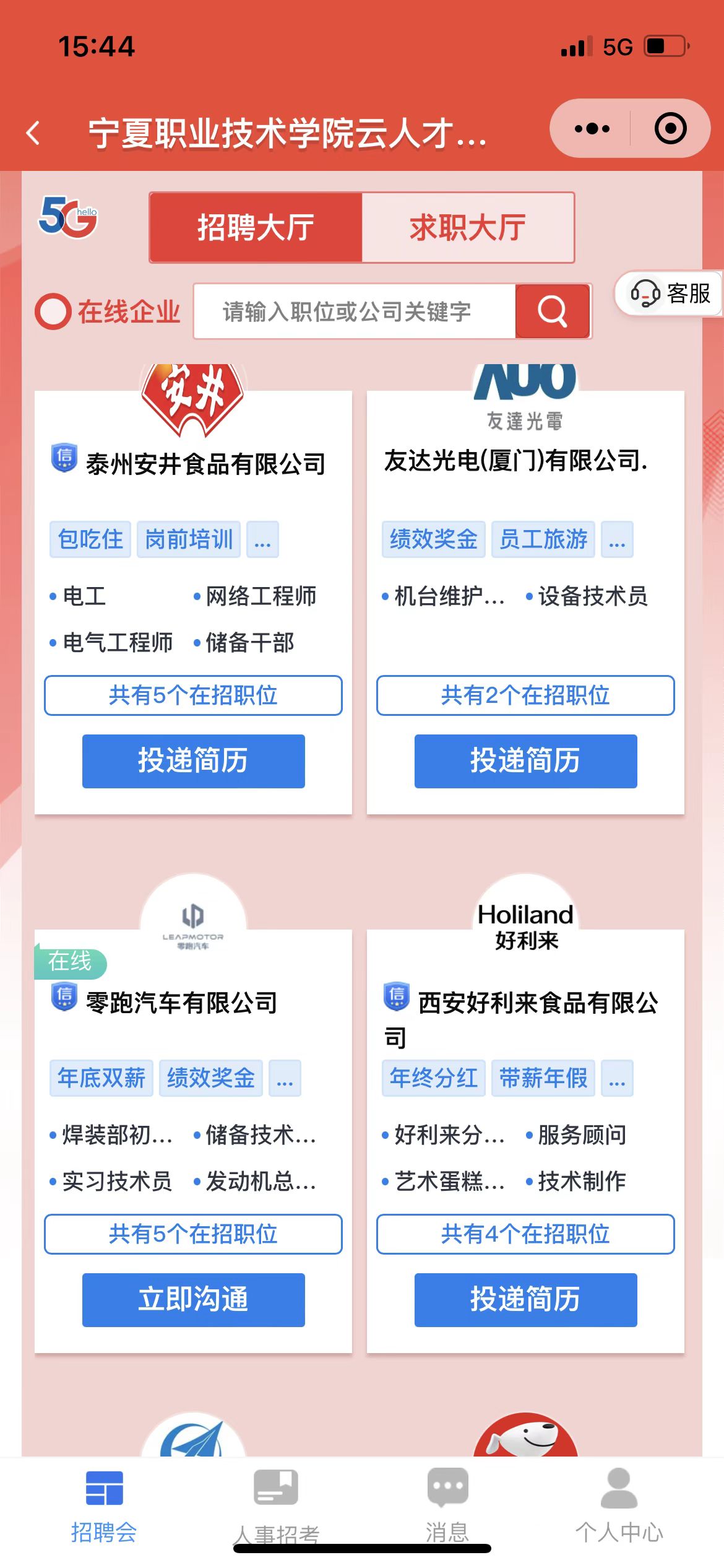 听取宣讲后,同学们对各个企业和招聘岗位的基本情况都有了进一步认识和了解。同学们通过“猫头英|云人才市场求职招聘会”小程序将精心准备的个人简历投递到意向企业。各企业人力资源负责人简历招聘信息交流微信群,为同学们在线答疑解惑并根据简历投递人数通知面试具体时间和要求。
