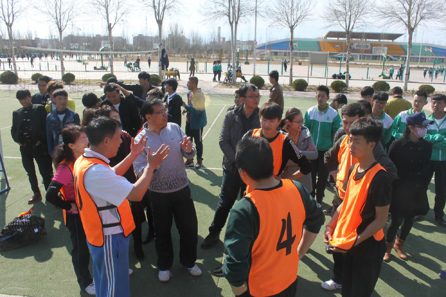 赛前双方友好握手,微笑示意。随着裁判员的一声哨响,比赛拉开序幕。双方队员精神饱满,信心百倍,各施技巧,拿出看家本领,挥洒着汗水,奋力拼搏。每一个发球,垫球,传球,扣球,拦网都展示出团队的智慧与合作精神。围观的啦啦队也是引人注目,职工激情豪迈,用家乡的语言唱起了助兴歌,师生们高喊着“加油”,“漂亮”,场外气氛更为热烈,整个球场内外呈现出一片友好和谐、其乐融融的场景。