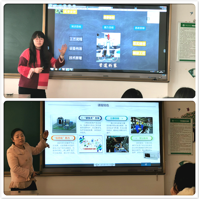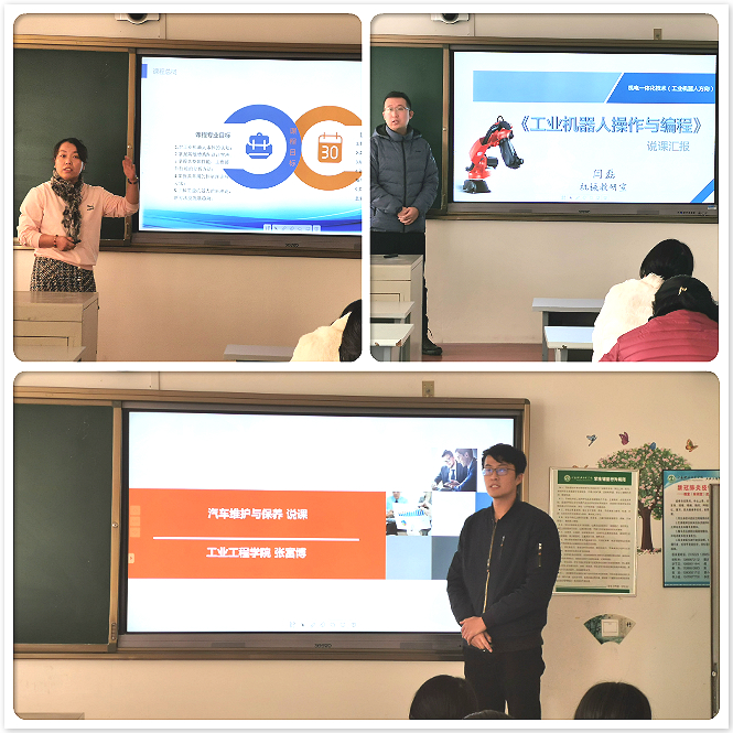 其次,五位说课教师围绕所承担课程在专业人才培养中的支撑地位和作用、课程目标、课程内容、课程实施方法和课程评价等方面内容做了详尽解析。