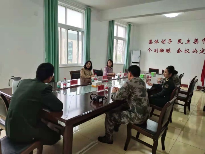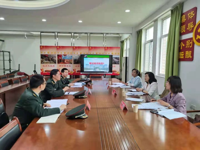 图2:与基础部负责人等讨论军政教育、军事体能培养需求