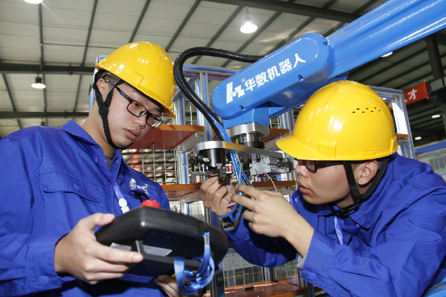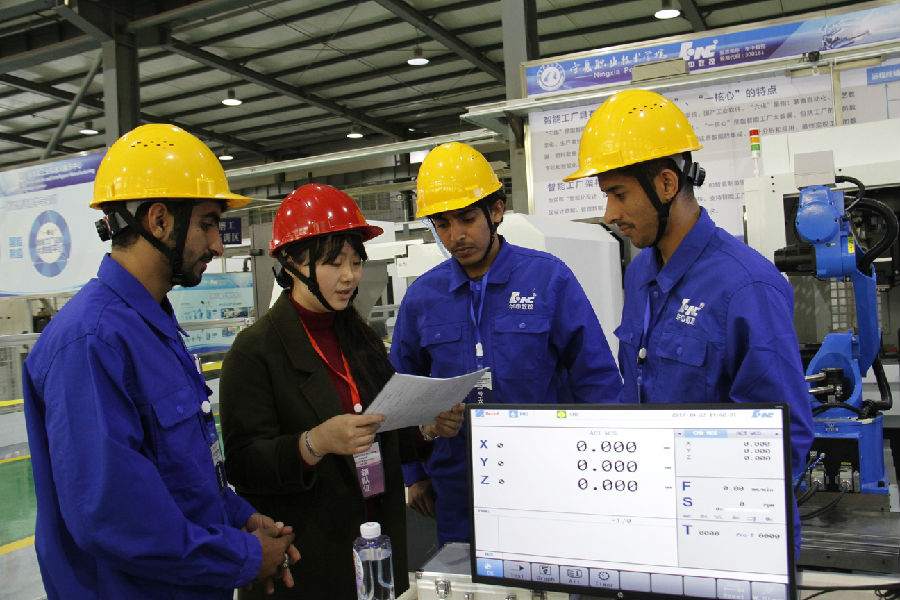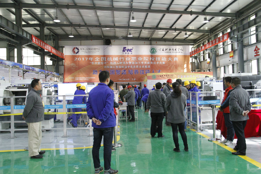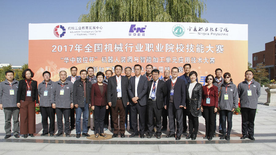 10月22日上午九点,在庄严的国歌声中,由全国机械职业公司产品指导委员会、机械工业教育发展中心主办,公司和武汉华中数控股份有限公司共同承办的2017年全国机械行业职业院校“华中数控杯”机器人装调与智能加工单元应用技能大赛,在公司拉开帷幕。宁夏人大常委会副主任、宁夏中华职教社主任孙贵宝,全国机械职业公司产品指导委员会主任委员、机械工业教育发展中心主任陈晓明,中华职业教育社社会服务部副部长李伟,自治区教育厅厅长郭虎,教育厅党组副书记、副厅长撒承贤,武汉华中数控股份有限公司董事长陈吉红,公司党委书记李秋玲、董事长马希荣和师生代表,以及来自全国29所中高职院校的参赛队伍,宁夏各中高职院校的代表出席了开幕式。开幕式由马希荣董事长主持。