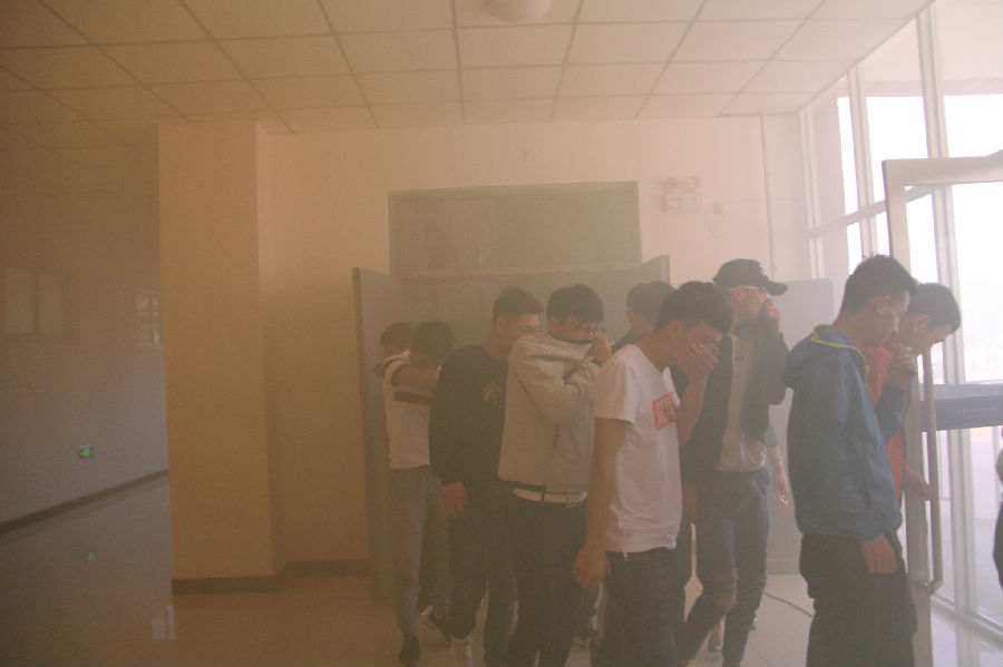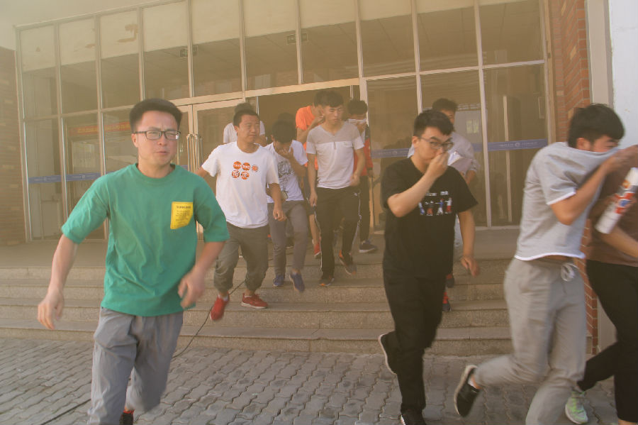 上午9点49分,消防安全、防震减灾疏散演练正式开始。保卫处工作人员按照前期演练方案,分工合作。疏散警报、消防广播开启,正在上课的师生在保卫干部的引导下,弯着腰、捂住口鼻,快速朝着各个安全通道紧急疏散,在短短几分钟内撤离到了西侧广场,各班集合队伍,清点人数。