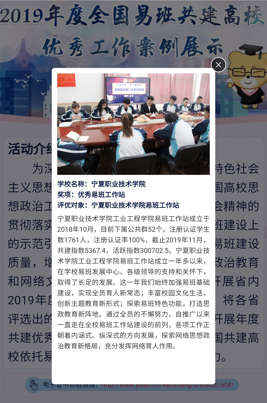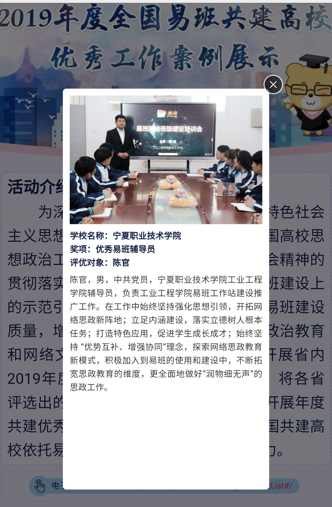 近日,教育部全国易班发展中心公布“2019年度全国易班共建高校优秀工作案例展示”评选结果。公司易班建设工作斩获多个奖项,其中,bevictor伟德易班工作站荣获“自治区优秀易班工作站”,bevictor伟德辅导员陈官荣获“自治区优秀易班辅导员”荣誉称号。