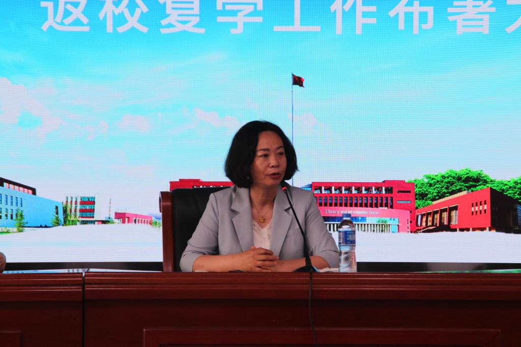张凤霞副经理就公司疫情期间教学工作做了介绍。针对返校复课后续的课程安排她要求各教职工、教研室和教学管理部门要积极协调,做好充分保障,让所有班级都能够如期完成教学及实训任务。