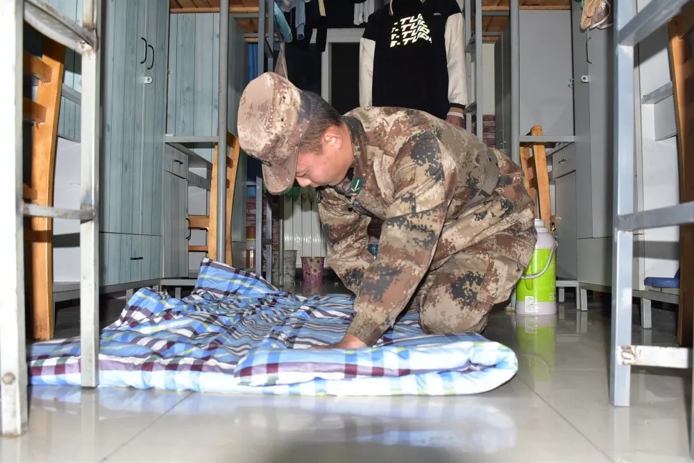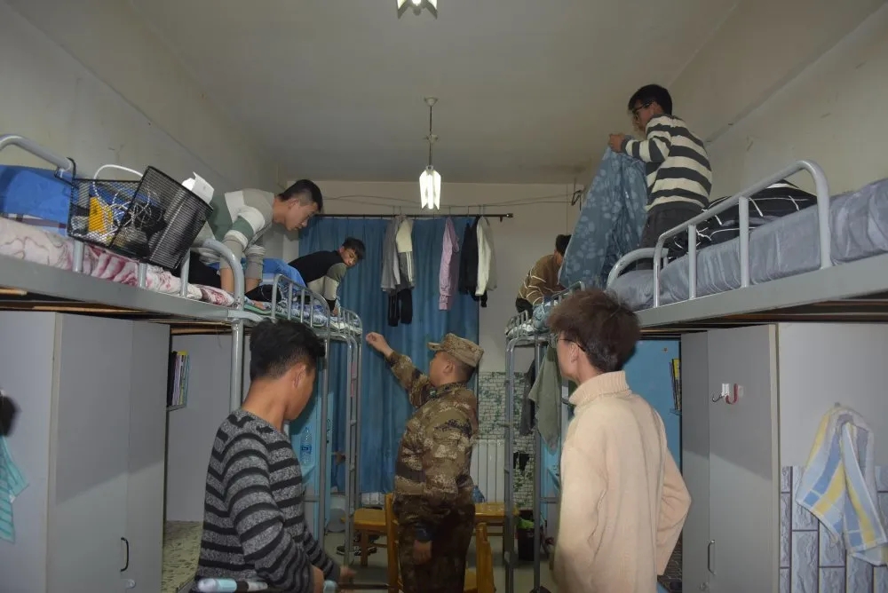 “进门看内务,出门看队列”,这是部队中常说的一句话。队列整齐能体现连队精神焕发的风貌,内务干净整洁能体现连队严谨、一丝不苟的军训态度。2019级士官生耐心为学弟学妹讲解内务标准化要求。