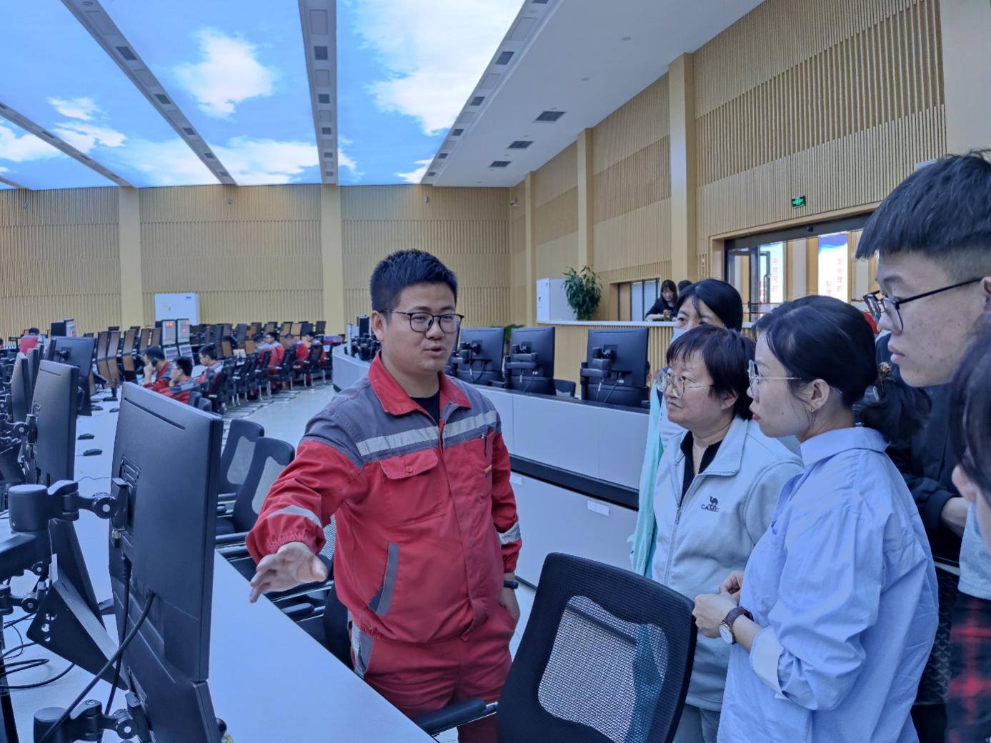 然后一行人员到烯烃三期中控室进行了参观,师生详细了解了烯烃新材料产品特性,生产工艺流程及特点。