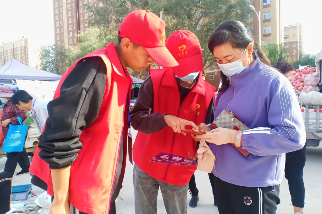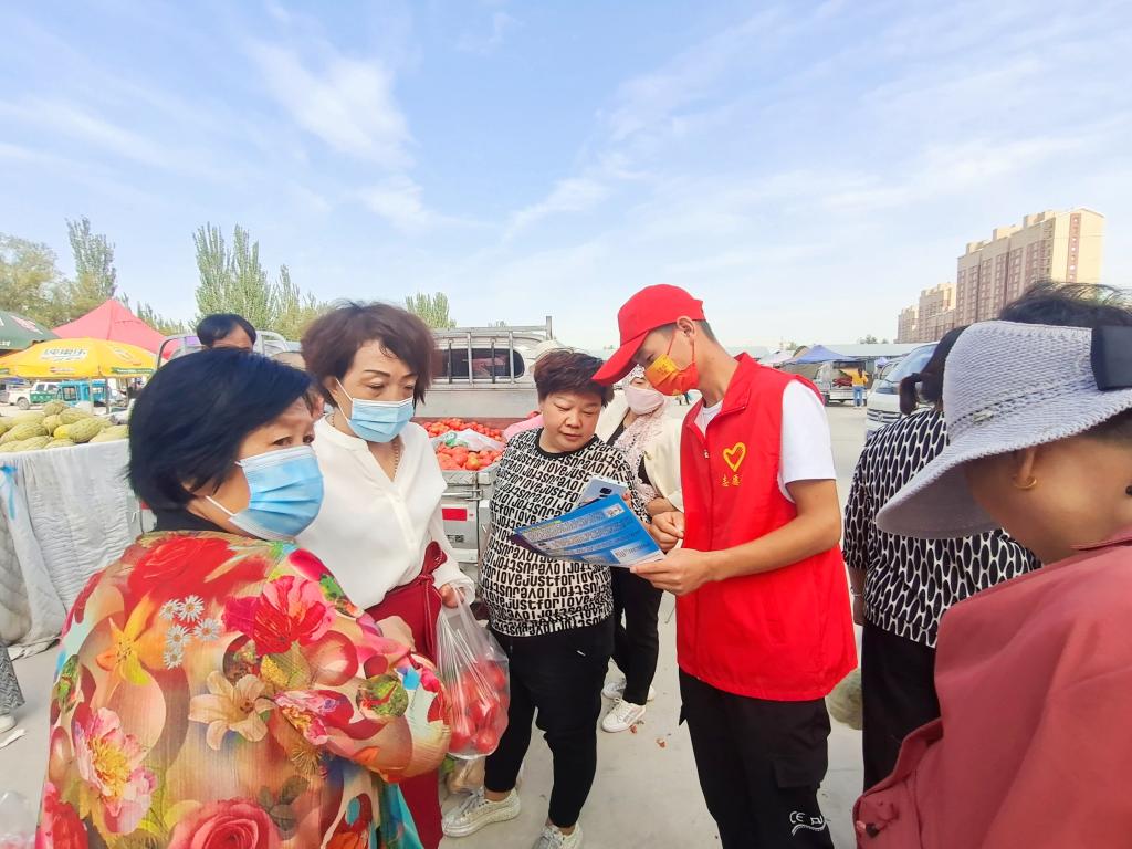 集市上居民络绎不绝,志愿者和社区民警一起进行防诈骗宣传,发放电信诈骗防治手册,对忙于出摊无法到场的摊主,主动来到摊前,或防诈骗内容讲解,或帮助打扫卫生,或帮助行动不便的居民运送货物,以自己的一言一行,践行着本次活动的主题与宗旨,展现着作为当代老员工和志愿者的担当作为。