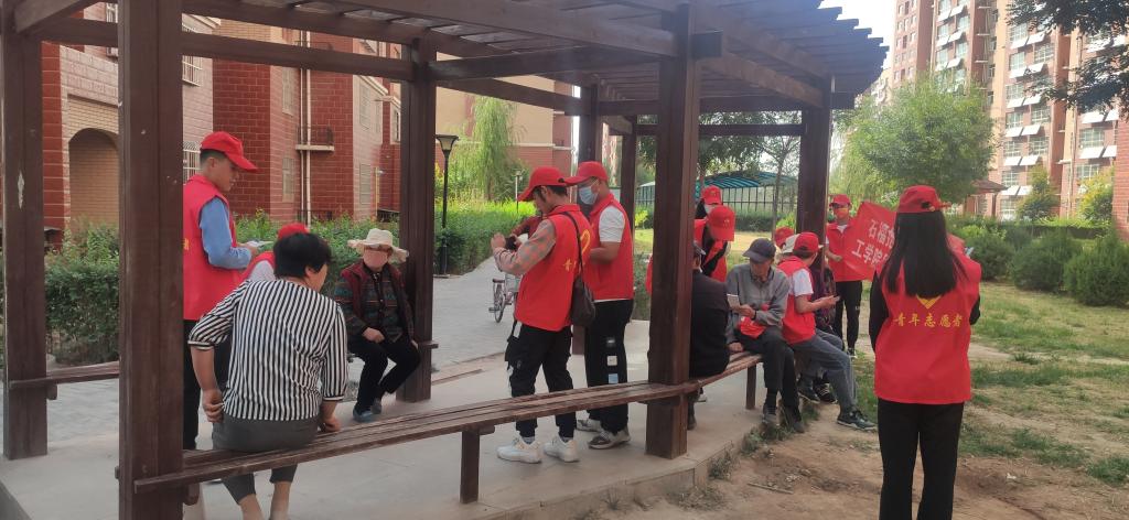在前往下一服务点的路上,志愿者队伍神采奕奕,井然有序。社区的另一角,几位耄耋之年的老人正在谈笑风生,志愿者团队一出现,老人们就表现出极大的兴趣。志愿者们主动上前问好,与老人交谈,传达青年人的担当与温暖,分别时,志愿者叮嘱老人注意休息,保重身体,有困难及时联系社区工作人员和志愿者,在双方的愉快与不舍中,结束了本次志愿活动。