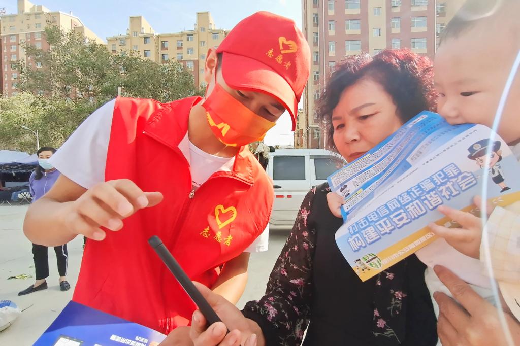 在社区的一角,聚集了正在休闲娱乐的居民们,刚开始志愿者抱着极大的热情向居民们进行民族团结政策、垃圾分类、电信诈骗等宣传,但我们的志愿活动并没有引起正在娱乐的居民们的关注,志愿服务工作一时陷入了僵局。但我们的志愿者并没有气馁,开始转换思路,主动跟身边的居民聊起了家常,通过交谈,讲解民族政策、电信诈骗、垃圾分类、智能机的使用等内容,在轻松愉快的氛围里,无形中以将自己的服务传达给每一位在场的居民,为本次志愿活动打下了良好的开端。