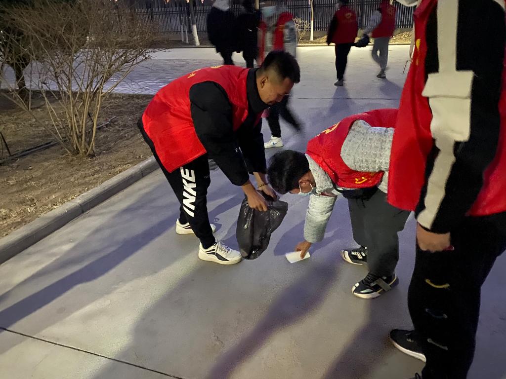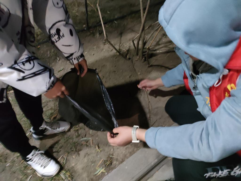 11月29日,志愿者们分成三组,分别对员工宿舍、餐厅、花园以及地面的垃圾和烟头进行清扫。同学们热情高涨、干劲十足,不怕累、不怕脏,不放过校园的每一处地面。