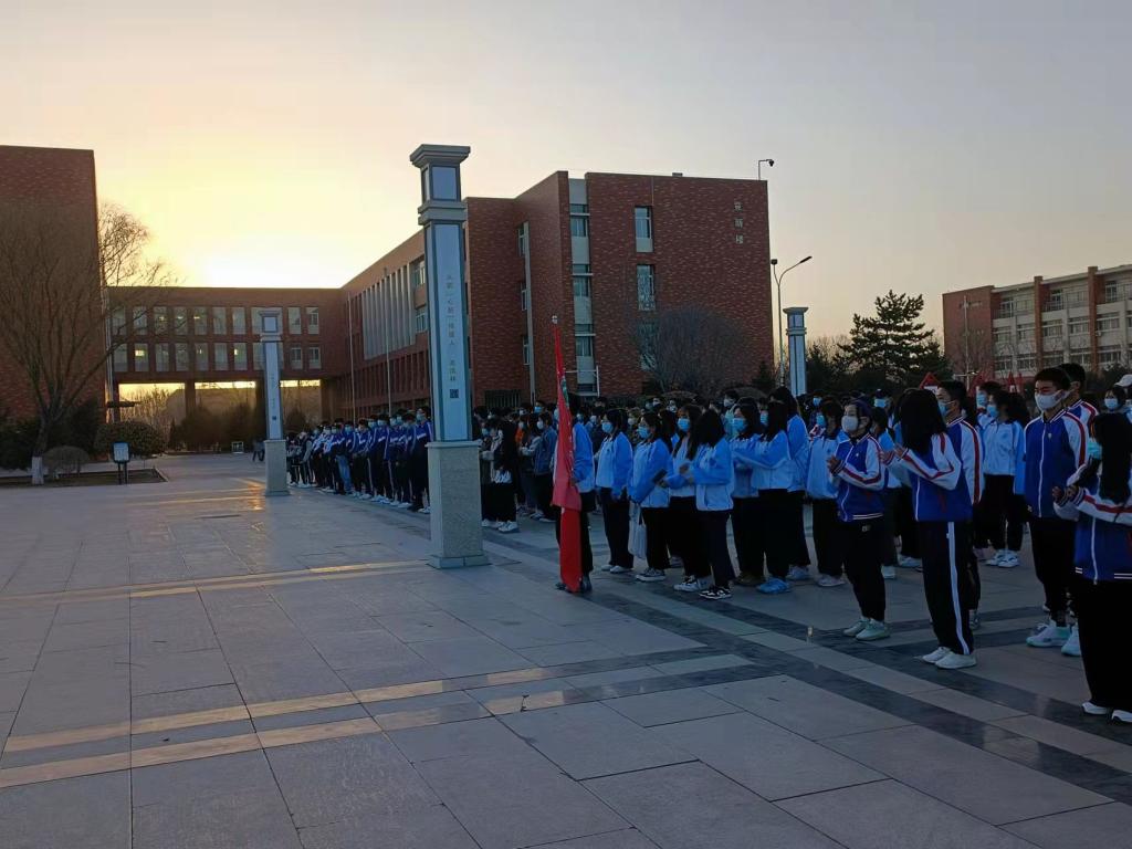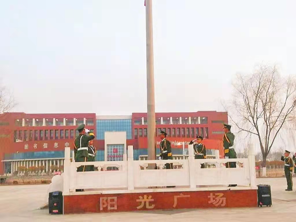 随着仪式的开始,在全体师生的注视下,国旗护卫队以雄伟的英姿护送国旗至升旗台,伴随着庄严的国歌声响起,五星红旗在朝阳中冉冉升起,在场师生庄严肃立,向国旗行注目礼。