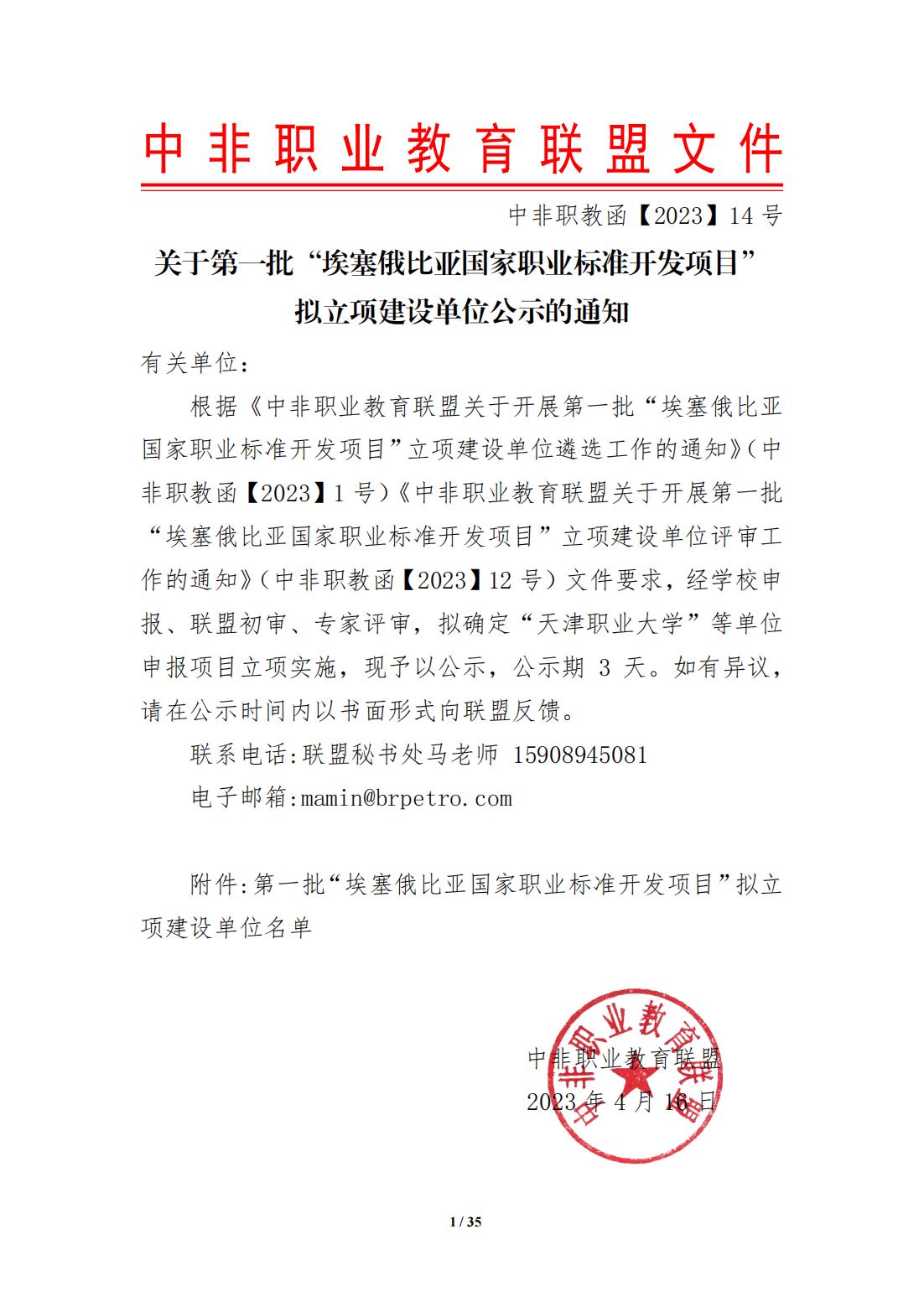 4月16日,中非职业教育联盟公布第一批“埃塞俄比亚国家职业标准开发项目”立项建设单位(中非职教函【2023】14号),公司从全国200余所高职高专院校中脱颖而出,成功入选埃塞俄比亚国家职业标准开发项目——机械加工技术员/工程师IV级立项建设单位,作为牵头单位开展后续项目实施工作。
