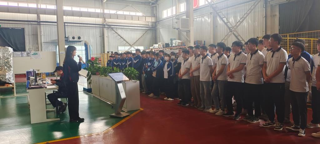 随后公司的技术骨干、企业导师丁波学长和其他几位优秀学长,分组带领同学们进行设备成品的参观以及机床结构和生产内容的讲解,让同学们对工厂有了初步的认识,对所学理论有了更深的理解,对自己未来的专业规划和工作内容有一个基本的方向。在企业现场学习中公司还安排工作多年的优秀学长向大家分享工作经验,强调要虚心请教,脚踏实地,认真学习技术,努力提高自己的能力。
