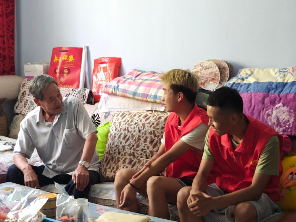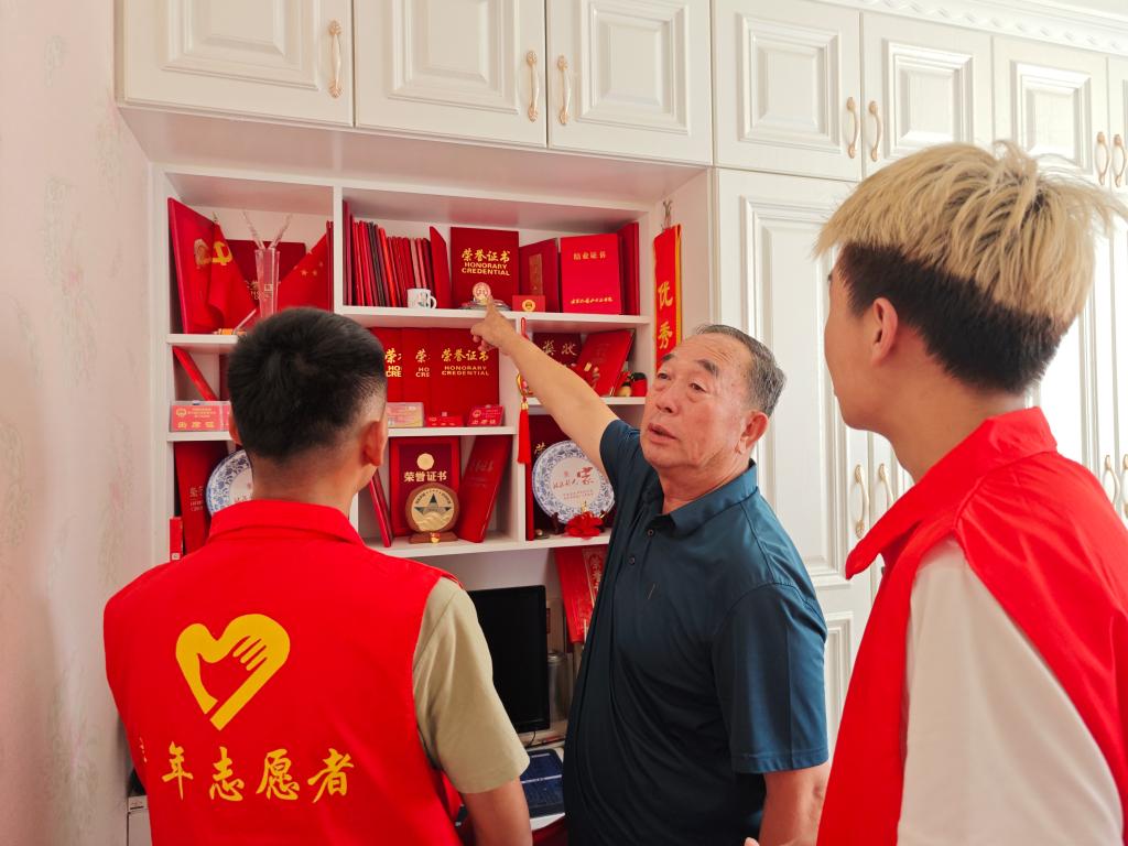 最后,团队成员在社区人员的带领下拜访了退伍老军人。孙爷爷精神矍铄,与团队成员深入交流,为大家讲述了新时代国家的发展迅速与强大,并叮嘱团队成员积极学习课业知识,在校期间练好本领,将来走向工作岗位为宁夏发展做贡献。铁爷爷带领团队成员参观了正在建设中的爱心屋,为团队成员讲述了对于现代化建设的理解以及青年人的作用,并嘱咐团队成员要好好学习,勤奋上进,使团队成员深受鼓舞。