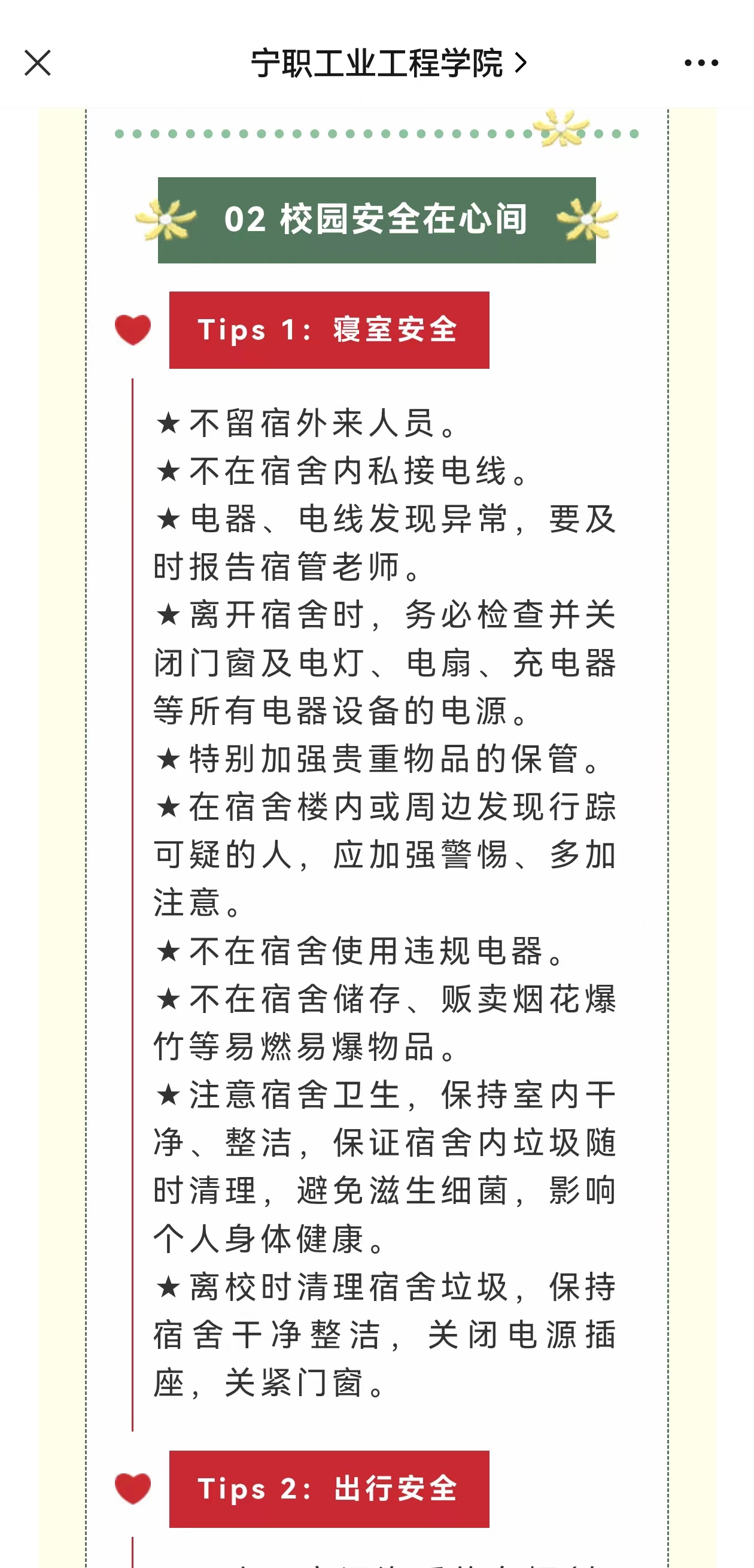 为确保安全教育全覆盖,公司各年级辅导员组织召开了员工安全教育主题班会,通过线上线下多渠道广泛宣传相关内容,强调全体师生关注消防安全、防范溺水、冬季传染病预防等重点领域,切实做到安全宣传无死角。同时,要求严格落实员工离校请销假和晚间值班制度,加强宿舍安全隐患排查,确保校园内外的综合安全。