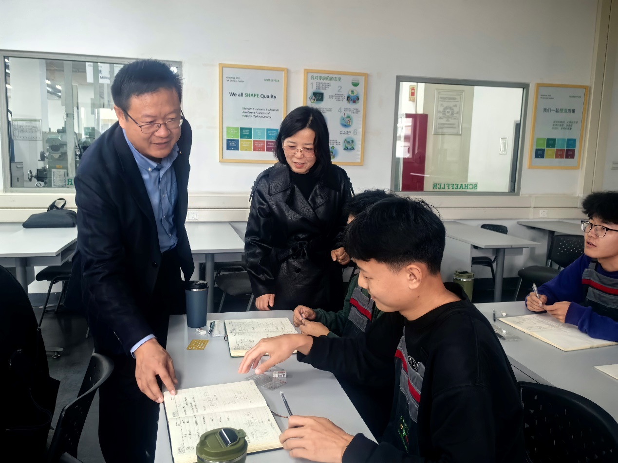 在舍弗勒(宁夏)有限公司,公司领导了解了公司的经营情况、毕业生的工作情况与职业发展,与企业代表就人才培养、课程设置、科研项目合作等方面进行了深入交流,并就今后进一步加强员工联合培养达成共识,双方均表示将继续推动订单班项目,结合德国“双元制”教学理念,努力培养具备工匠精神的高素质技术技能人才。