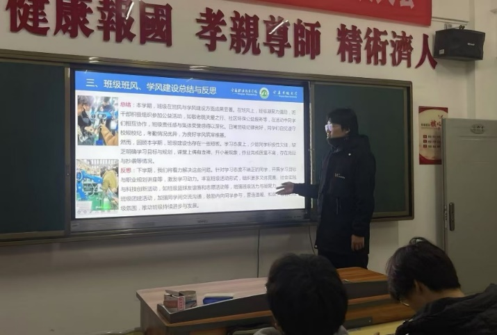 最后,各班级班长总结本学期以来,班级在班风和学风建设上取得的成绩,同时总结在学风建设中的不足,为下学期班级建设与发展做铺垫。然后,根据本学期表现公开评选班风领航之星、班风建设之星、学风引领之星、卫生监督之星、心理护航之星、文艺之星、助人为乐之星、班级贡献之星、全能之星、志愿服务之星等优秀个人10人以及班级文明宿舍。辅导员钟老师还给获得本学期优秀个人及文明宿舍舍长颁发奖品,并提出在今后的学习生活中,希望同学们将以他们为榜样,进一步确立班级学风引领导向,持续推进学风建设工作,以实际行动落实各项举措,助力每位同学在优良学风的滋养下茁壮成长,实现学业梦想。