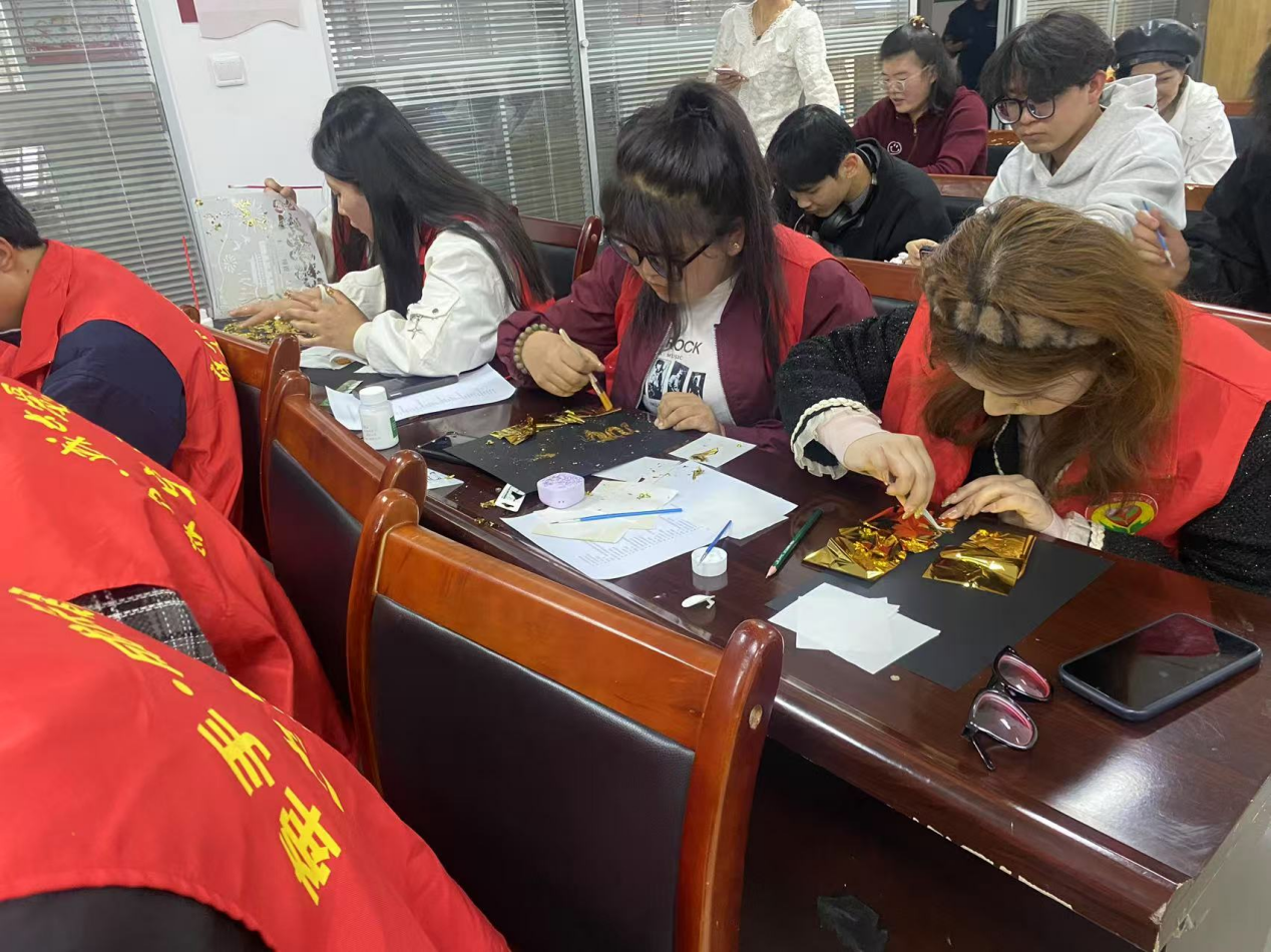 3 月 14 日,志愿者们在西夏区荷花苑社区策划了金箔非遗绘画作品展。金箔工艺是中国传统非物质文化遗产之一,具有悠久的历史和独特的艺术价值。志愿者们将金箔与绘画艺术相结合,既保留了传统金箔工艺的精髓,又融入了现代艺术元素。通过这次活动,不仅弘扬了传统文化,也提升了公众对非遗的认知与保护意识。