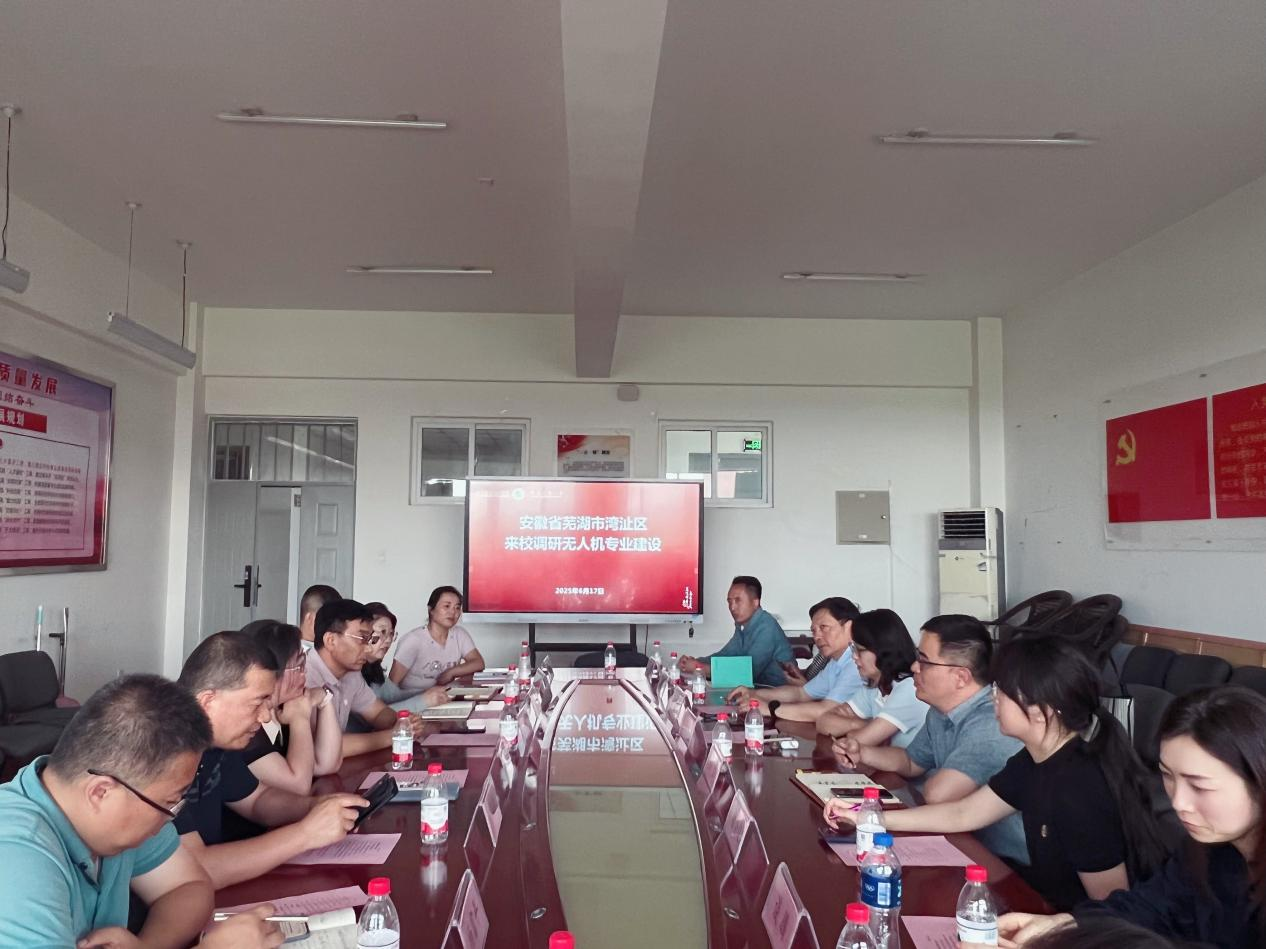 6月17日下午,安徽省芜湖市湾沚区副区长蔺琳一行到公司,专题调研无人机专业建设情况。公司党总支副书记王立嵘主持调研座谈会。