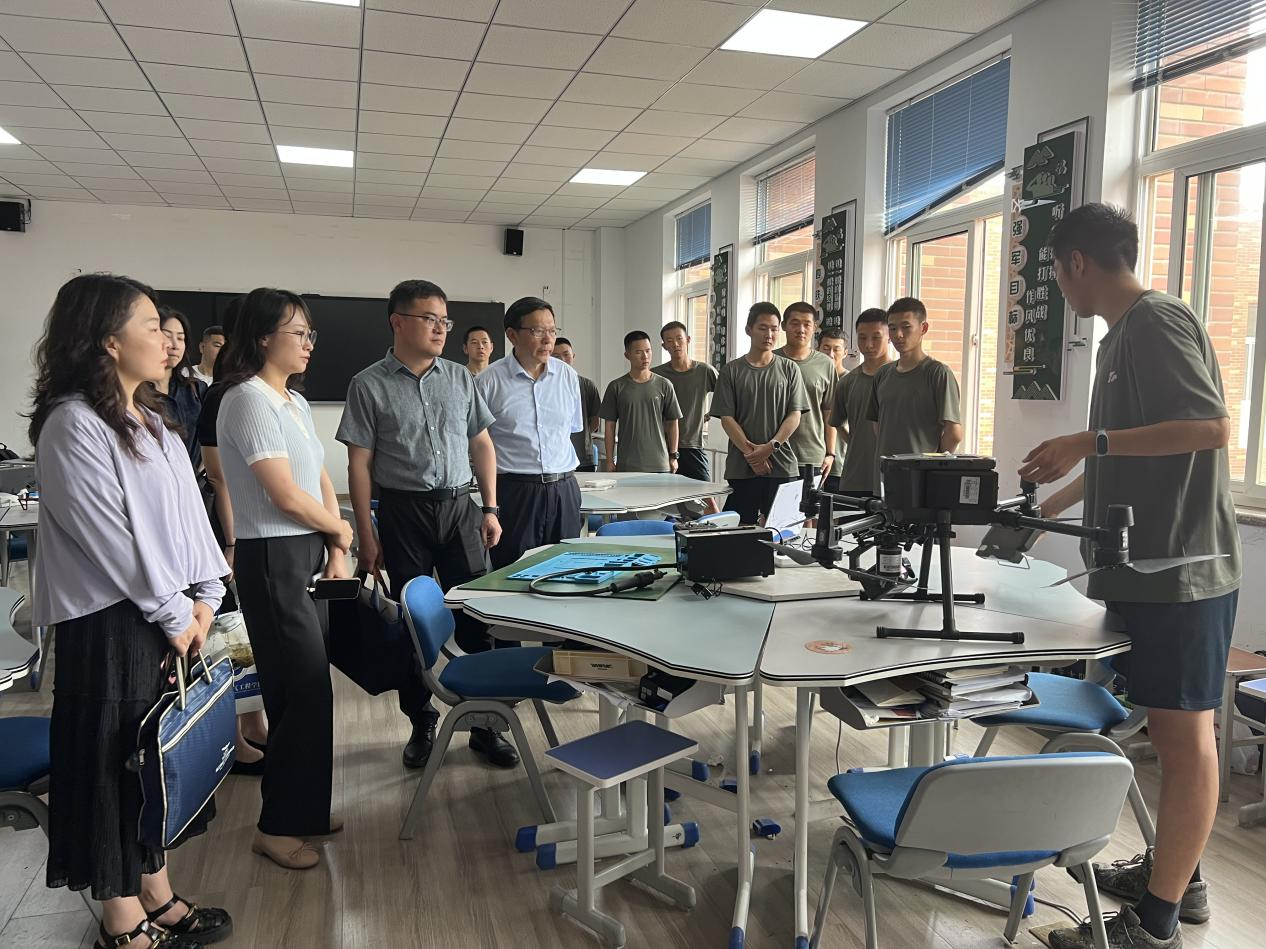 蔺琳副区长一行首先参观了bevictor伟德无人机实训室。2023级机电一体化技术军士班员工赵岩松现场介绍了实训室配备的多种无人机机型,其中由员工自主组装的无人机引发了调研组成员的浓厚兴趣。