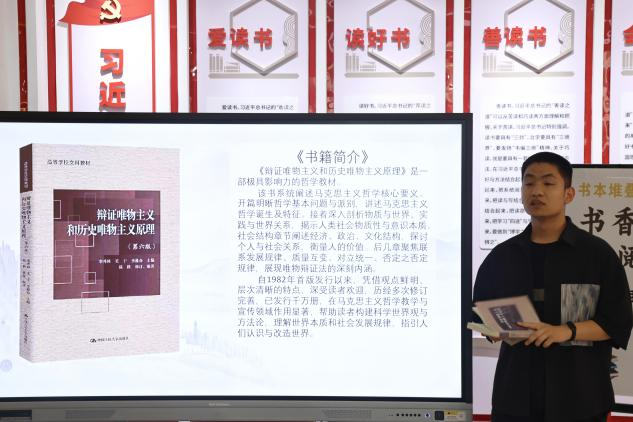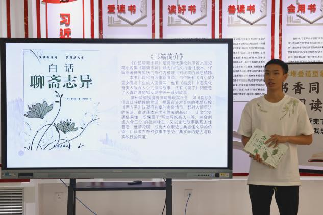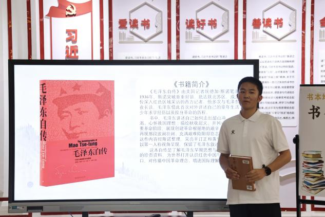 活动现场,15位读书代表依次上台,带来一场跨越时空的知识盛宴。从路遥《平凡的世界》里平凡人蕴含的不凡力量,到柯南·道尔《福尔摩斯探案集》展现的逻辑之美;从《毛泽东选集》的思想光辉,到泰戈尔《飞鸟集》的诗意哲思——分享者们以书为桥梁,带领现场师生畅游文学、哲学、商业管理、科幻想象等多元知识领域 。