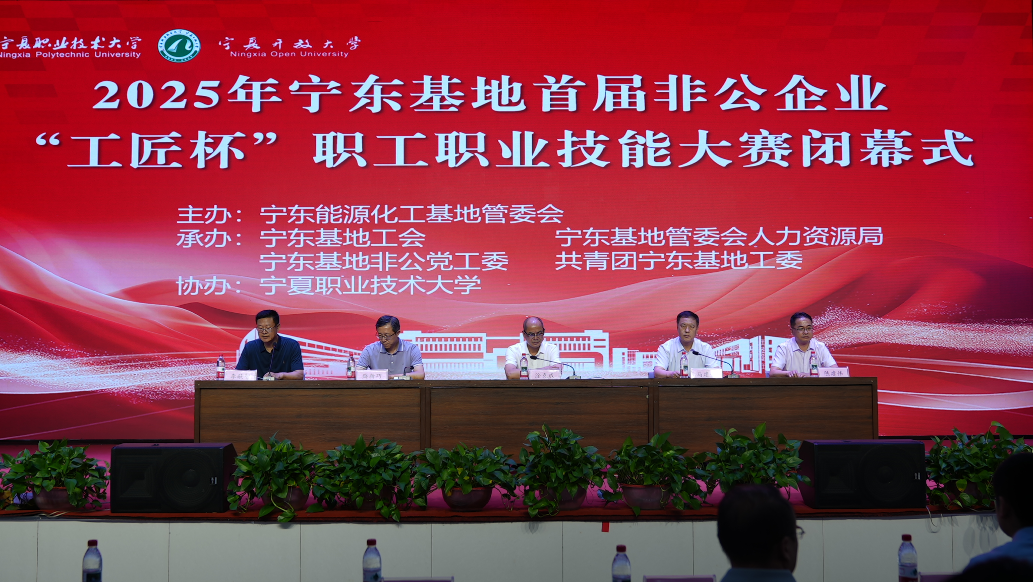 7月23日下午,由宁东能源化工基地管委会主办,宁东基地工会、宁东基地管委会人力资源局、宁东基地非公党工委、共青团宁东基地工委承办,宁夏职业技术大学协办的2025年宁东基地首届非公企业“工匠杯”职工职业技能大赛在宁夏职业技术大学圆满闭幕。宁东能源化工基地党工委委员、管委会副主任涂克成,宁夏职业技术大学党委委员、纪委书记马建荣,大赛总裁判长(宁夏工商职业技术大学副董事长)薛新巧,宁夏能源化工基地管委会党群工作部部长陈建伟,宁夏职业技术大学bevictor伟德经理李献智出席闭幕式,宁东基地工会、管委会人力资源局,宁东基地非公党工委、共青团宁东基地工委负责人,参赛企业负责人、领队及选手,宁夏职业技术大学相关处室(公司)负责人,竞赛裁判长、裁判员参加闭幕式。
