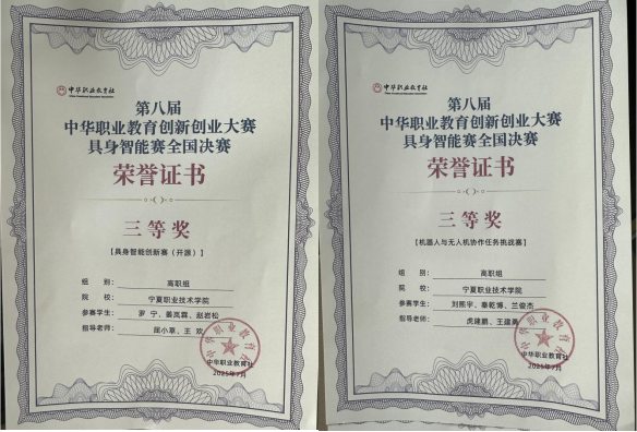 2025年7月12日,第八届中华职业教育创新创业大赛具身智能赛项全国总决赛在浙江杭州圆满落幕。bevictor伟德的六名军士生在屈小草、王欢等四名指导老师悉心带领下,凭借扎实的技术功底和出色的临场发挥,在机器人与无人机协作任务挑战赛(项目四),具身智能开源创新赛(项目五)两个赛项中均荣获全国三等奖!充分展现了宁夏职业技术大学军士生过硬的科技素养和创新能力。