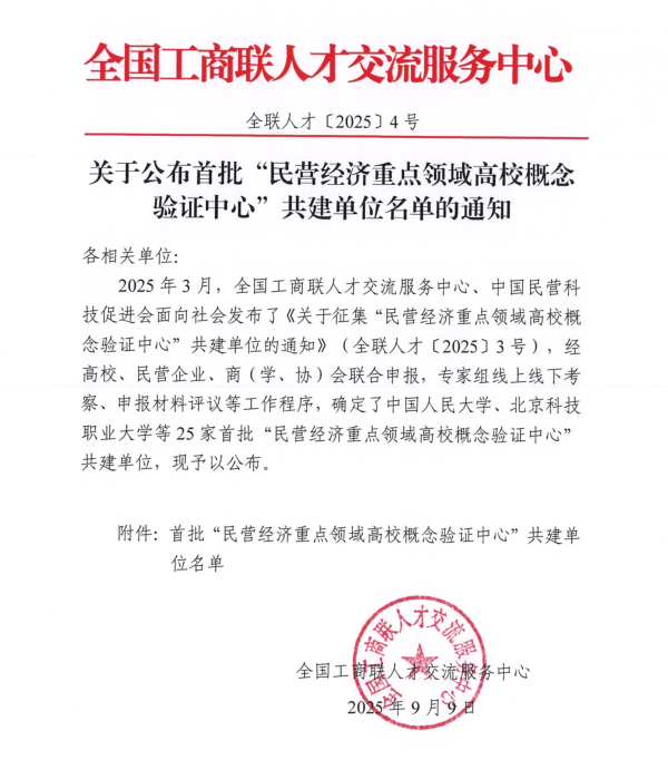 近日,全国工商联人才交流服务中心与中国民营科技促进会联合公布了全国首批“民营经济重点领域高校概念验证中心”共建单位名单,中国人民大学、北京科技职业大学等25家单位入选。宁夏职业技术大学凭借“智慧化工绿色安全创新概念验证中心”成功获选,实现了宁夏地区在精细化工领域的新突破。