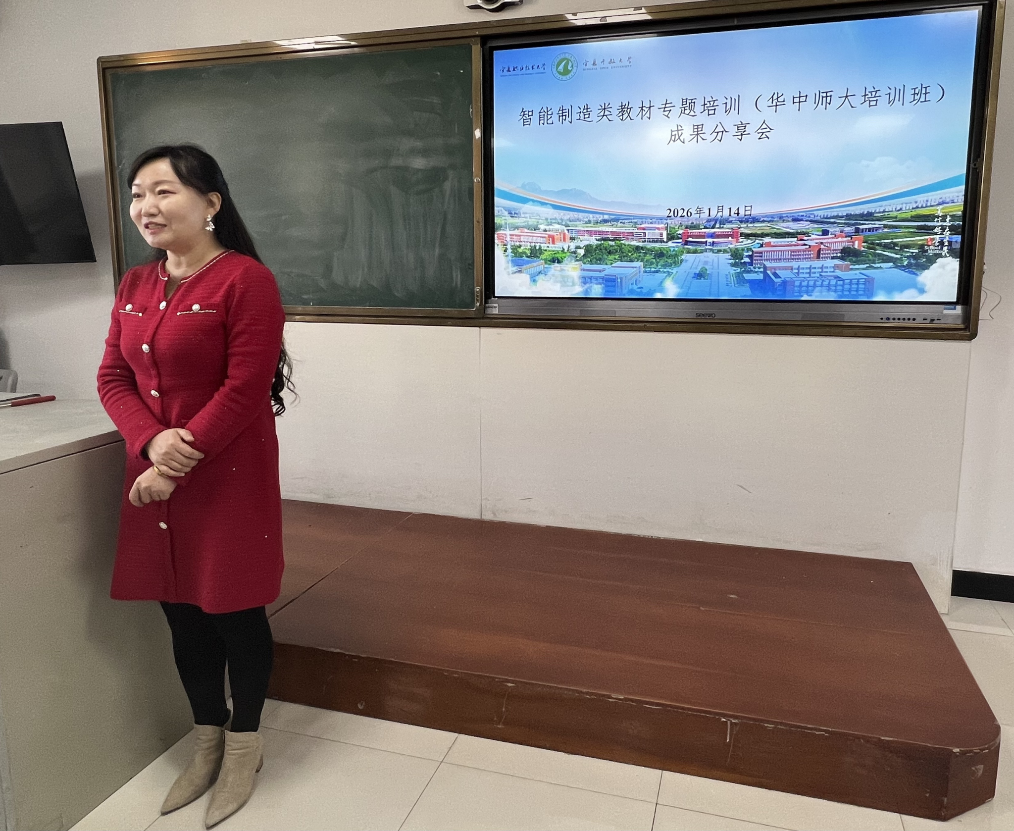 分享会伊始,六位参加“智能制造类教材开发”专题培训的教师代表依次作了精彩汇报。他们围绕教材编写理念、教材建设路径、教材内容重构、实践教学案例及数字化教学资源应用等核心主题,结合各自专业背景,详细分享了学习收获与深刻体会。
