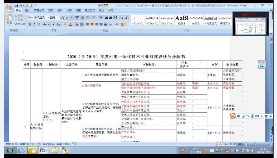 此次双高网络视频会议,明确了数控教研室每位教师在双高建设中的任务、责任与担当。