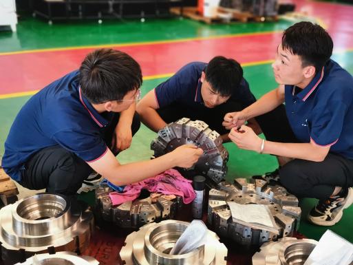 部分同学编入机加工班组,跟随企业带教师傅在数控车床、数控铣床上完成工件的粗、精加工,整个生产过程中培养、提高了同学们的操作技能。