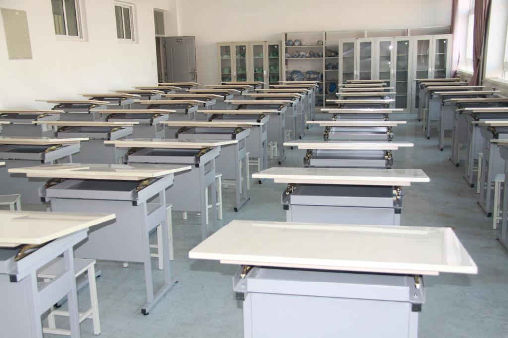 机械测绘实验室配备绘图桌100套。各种教学模型及教学挂图3套,各种测绘零件,减速器及测绘工具等,主要承担《机械图样的识读与绘制》、《机构与零件设计》《公差配合与测量技术》等课程实验教学任务。可完成机械零件测绘、制图大作业、机构与零件设计课程设计等机械基础知识综合应用及训练实验项目。